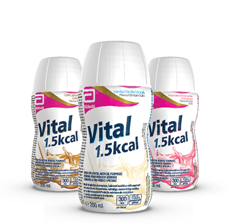 *In an observational study conducted across 19 medical sites in Spain, adults (≥18 years) with gastrointestinal (GI) impairment were prescribed Vital 1.5kcal as part of routine clinical practice. GI impairment was defined as compromised tolerance by the presence of symptoms such as diarrhoea, nausea, vomiting, bloating, or early satiety. Over 12 weeks, patients experienced improvements in tolerance, including reduced GI symptoms, improved stool consistency, and a reduction in abdominal pain.